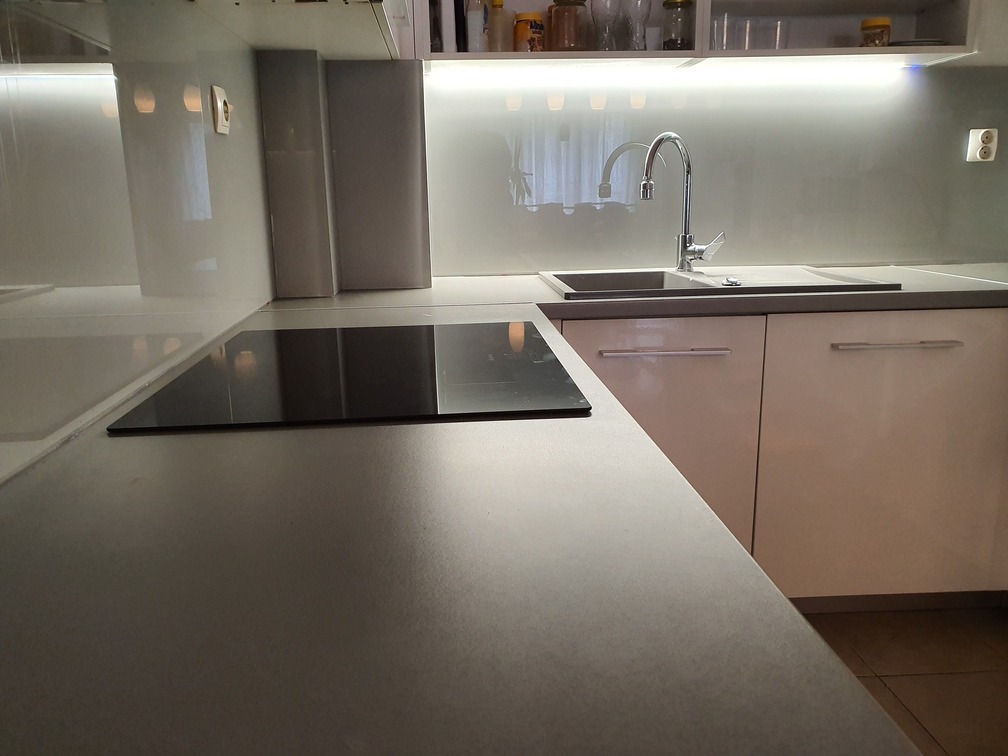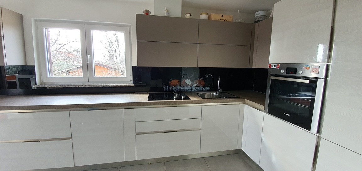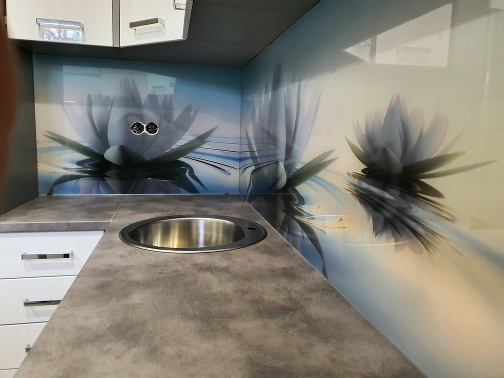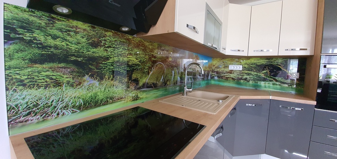 U modernoj arhitekturi i općenito pri uređenju interijera sve veću zastupljenost materijala koje se koristi zauzima staklo.Prilikom odabira vrste stakla potrebno je poštivati specifičnost namjene i zahtjeve (osim estetskih) koje će staklo morati tijekom eksploatacije zadovoljavati. Mi u našoj tvrtci ne dozvoljavamo kompromise po pitanju kvalitete ugrađenih stakala, tako da za potrebe oblaganja kuhinjskih zidova između elemenata ugrađujemo isključivo KALJENO staklo debljine od 4 do 10 mm(najčešće 6mm), ovisno o potrebi i želji samih investitora. Nakon fizičke i termičke obrade na staklo se aplicira i zapeče boja koja je otporna na UV zračenje i trajno postojana. Boje se izabiru i mješaju po RAL karti odnosno po uzorku same stranke. Također umjesto boje na staklo možemo otisnuti i fotografiju velikih dimenzija koja prostoru daje jedinstven i upečatljiv dojam. Spremni za suradnju? Obratite nam se s povjerenjem